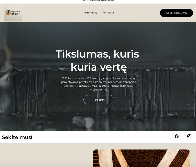 Pjovimo stilius is a clear and focused website designed for a metal cutting and fabrication business. The project is built on a minimalist foundation, emphasizing precision, functionality, and clarity.