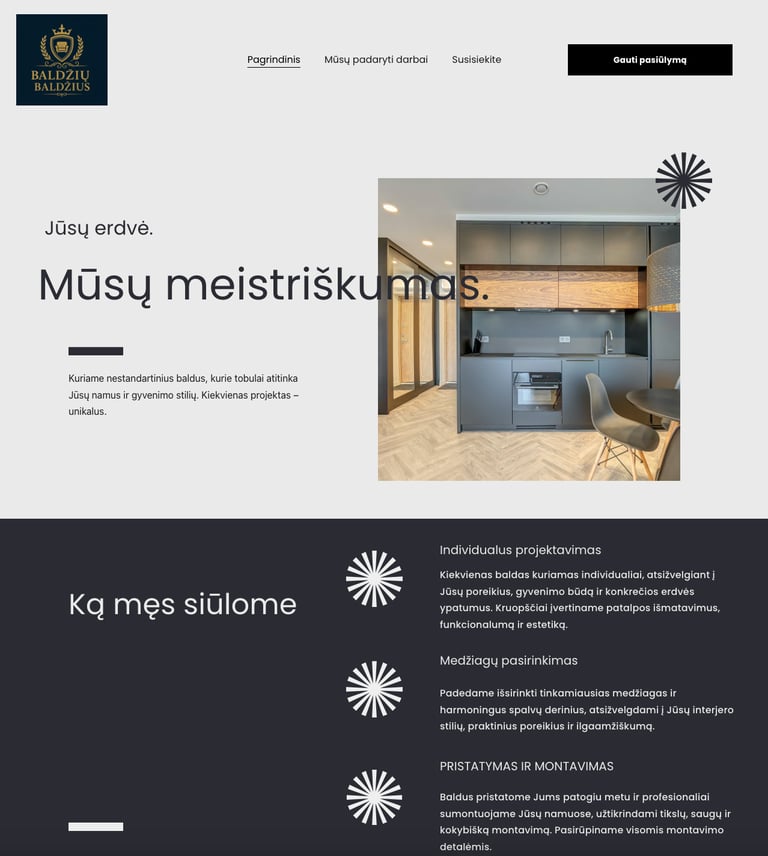 Baldžių Baldžius is a clean and functional website created for a custom furniture manufacturer. The project follows a minimalist approach, focusing only on what truly matters — clarity, structure, and ease of use.
